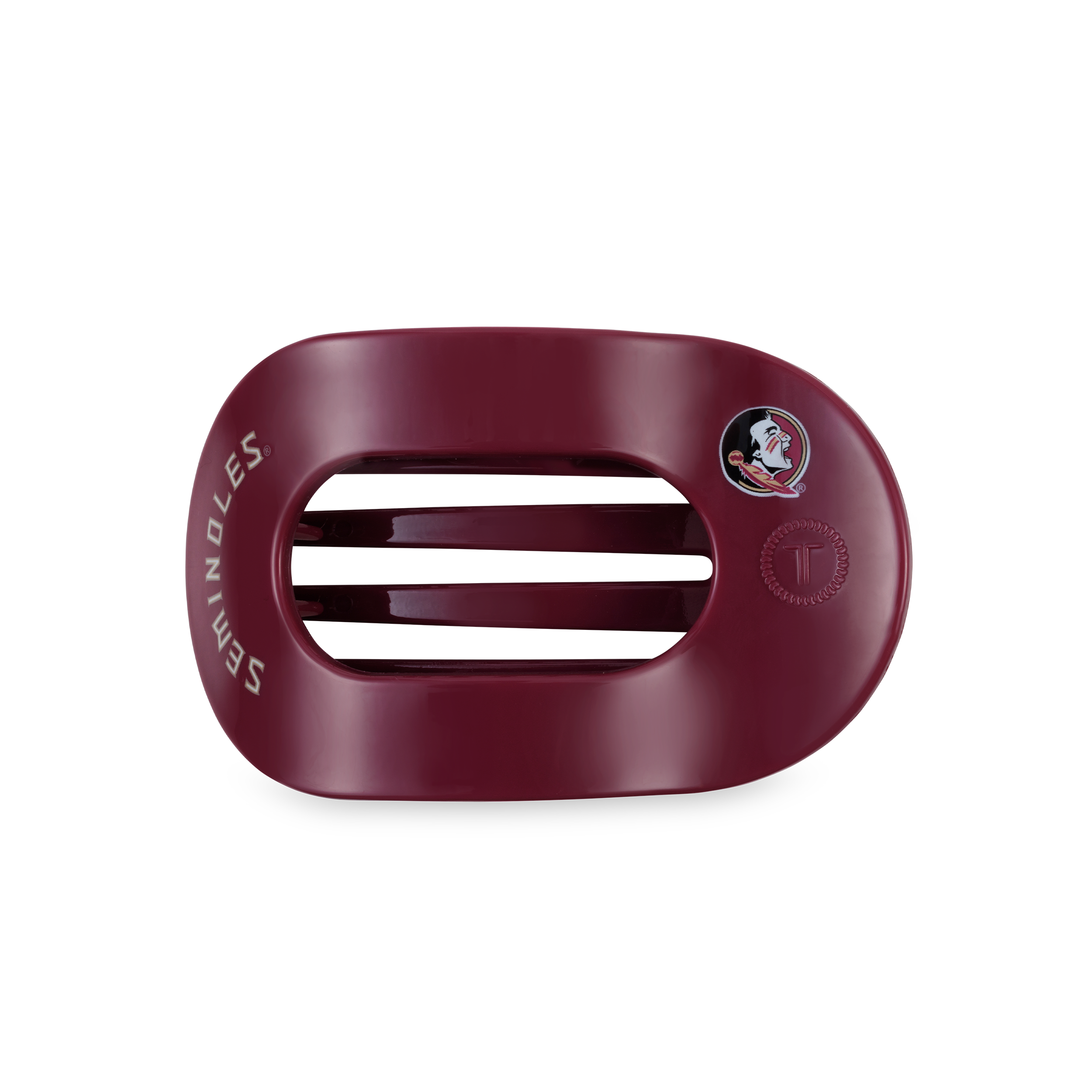 Lay flat and relax with the new TELETIES Florida State University, Go Noles! Medium Flat Round Hair Clip in Garnet and Gold. This hair clip is designed to allow you to lay back flat, do yoga, or sit comfortably in a seat with a headrest, and it is made with the same material that is nearly unbreakable. Shop your favorite Florida State University hair accessories now! Go Noles!