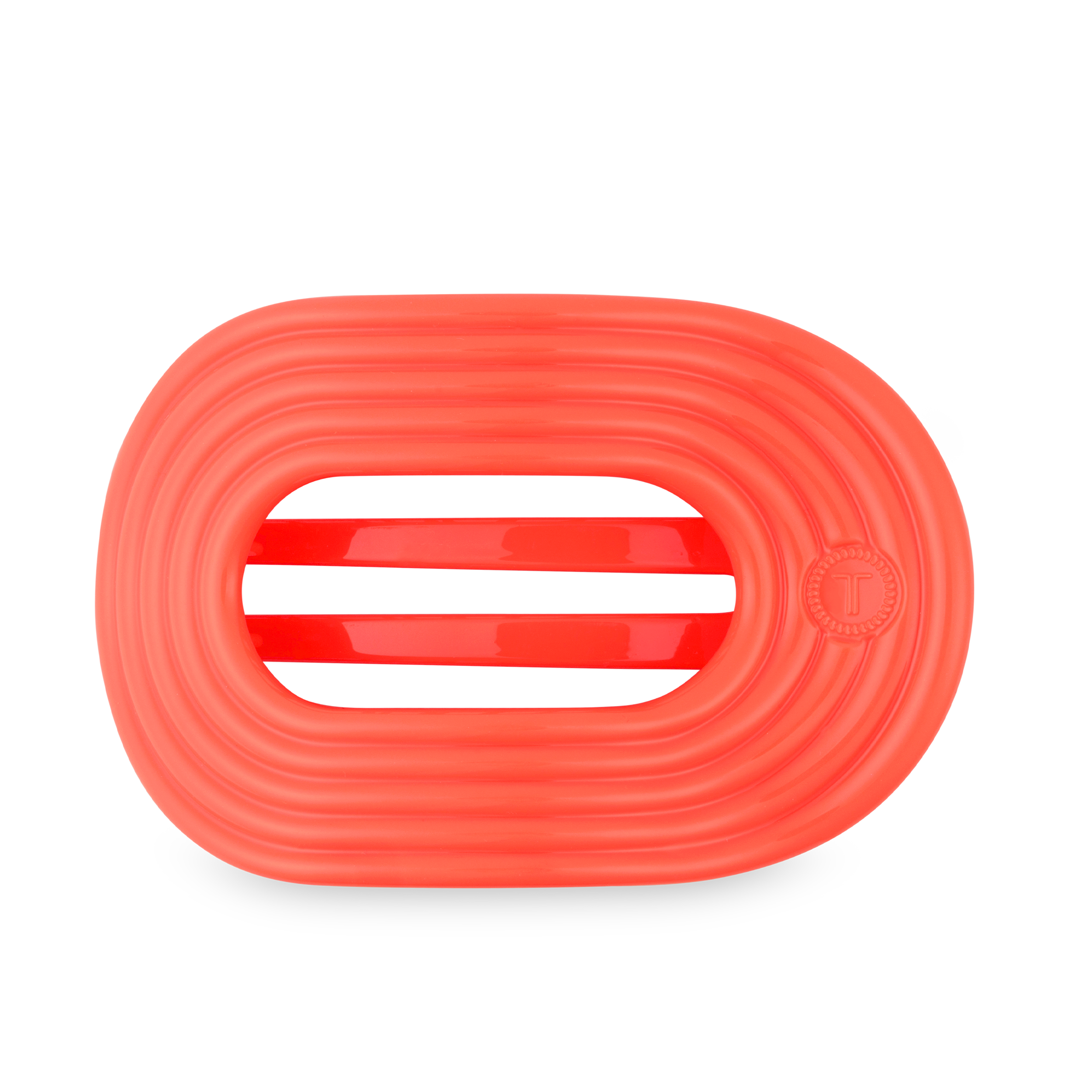 Lay flat and relax with the new TELETIES Darty Small Flat Round Hair Clip in Neon Coral. This hair clip is designed to allow you to lay back flat, do yoga, or sit comfortably in a seat with a headrest, and it is made with the same material that is nearly unbreakable. Featuring a grooved texture for a dimensional finish.