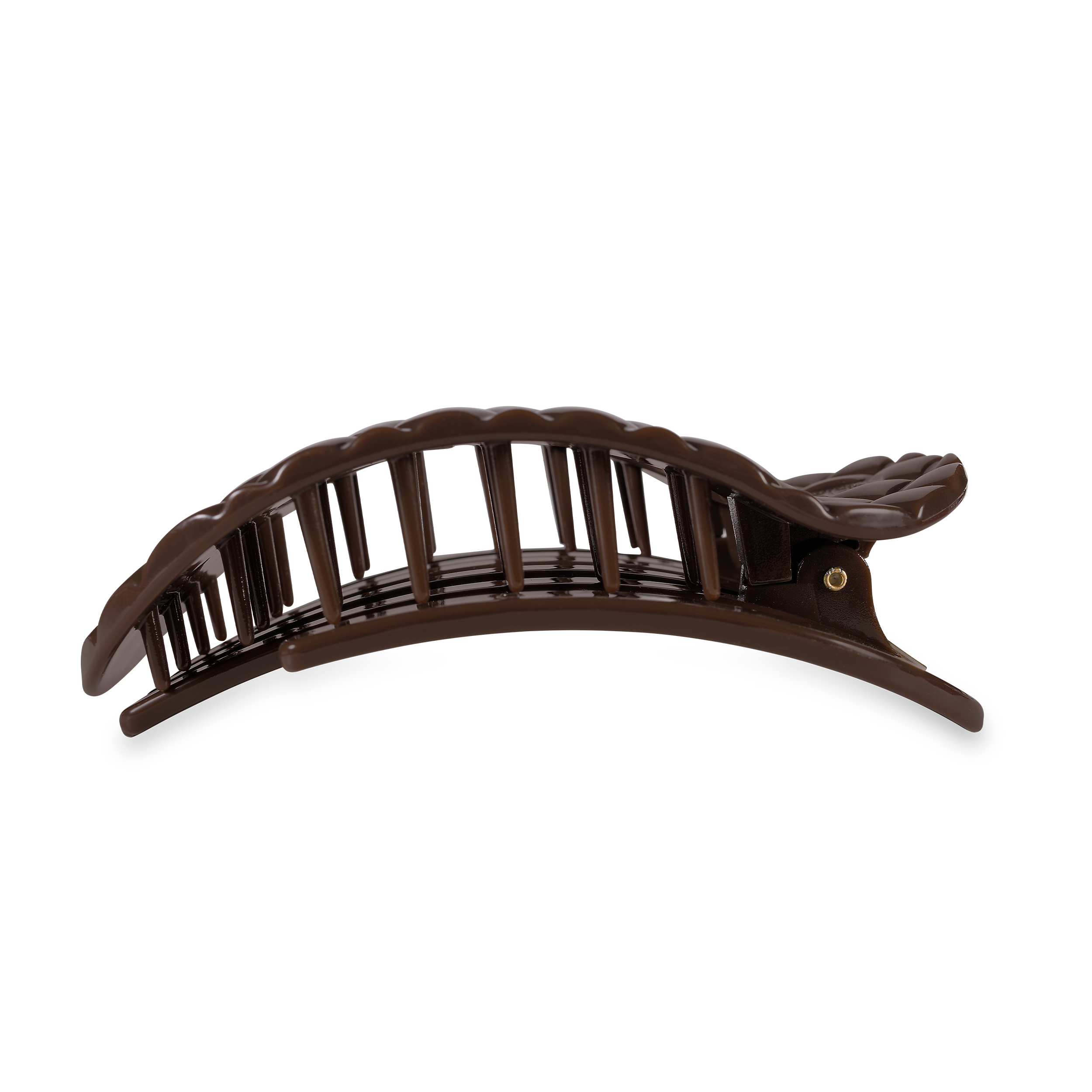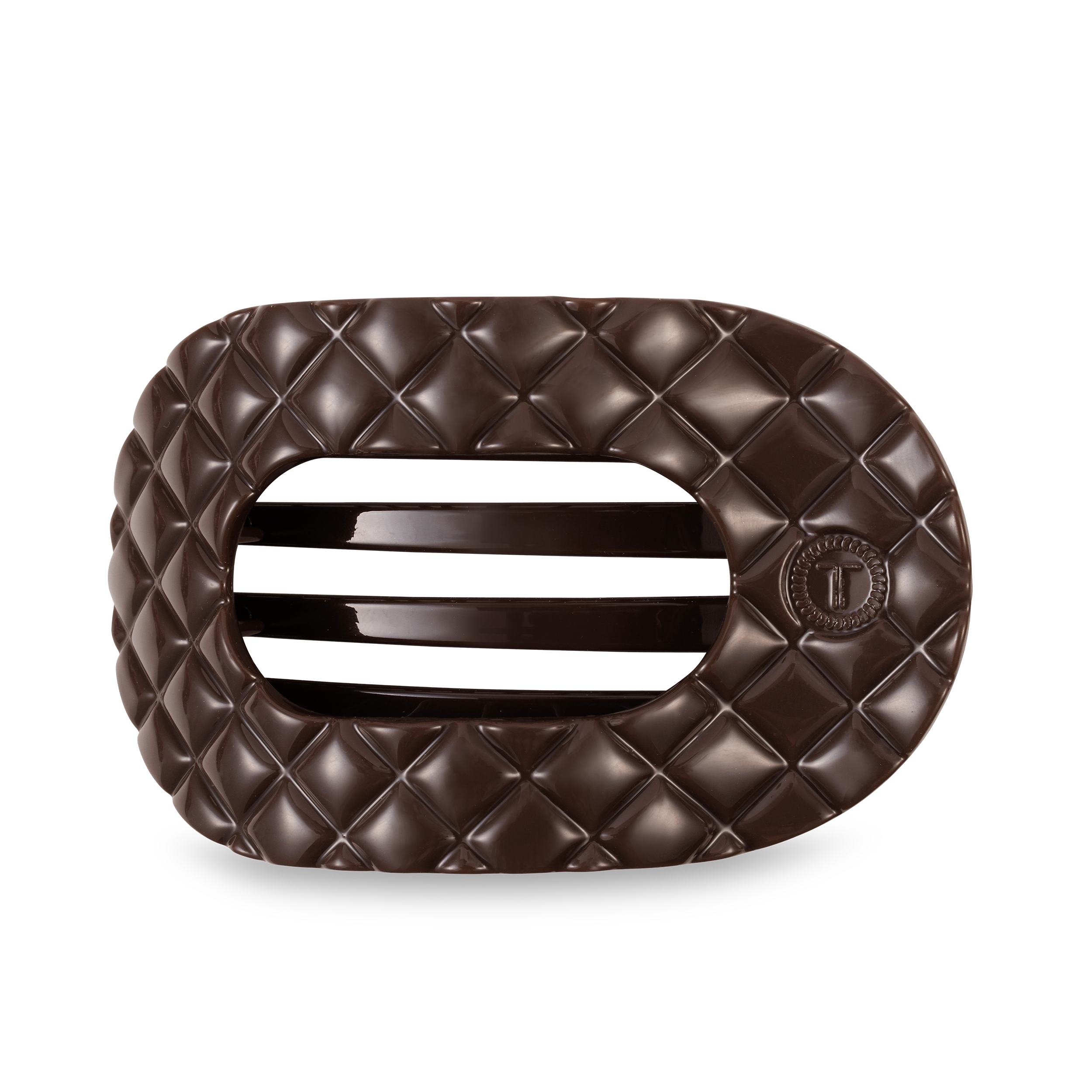 Lay flat and relax with the new TELETIES Truly Taupe Quilted Large Flat Round Hair Clip in Taupe. This hair clip is designed to allow you to lay back flat, do yoga, or sit comfortably in a seat with a headrest, and it is made with the same material that is nearly unbreakable. Lay down flat with comfort Bendable teeth for a secure yet gentle hold Lightweight, durable, and suitable for all hair types Perfect for all-day wear—from sunup to sundown The large size is 4.25 inches long.
