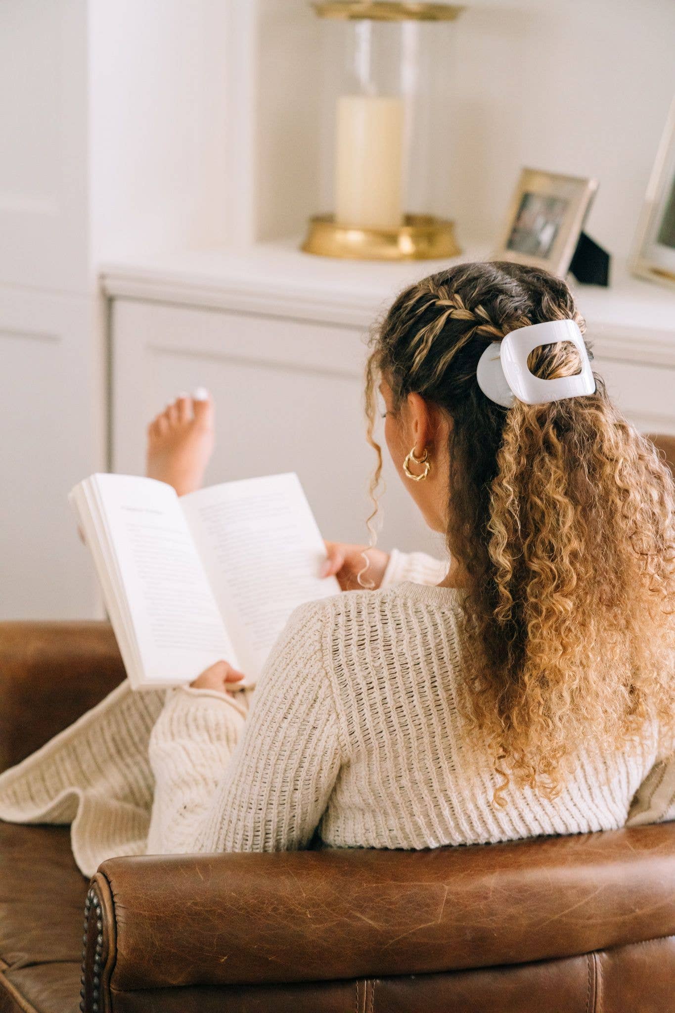 Lay flat and relax with the new TELETIES Coconut White Large Flat Round Hair Clip in White. This hair clip is designed to allow you to lay back flat, do yoga, or sit comfortably in a seat with a headrest, and it is made with the same material that is nearly unbreakable.