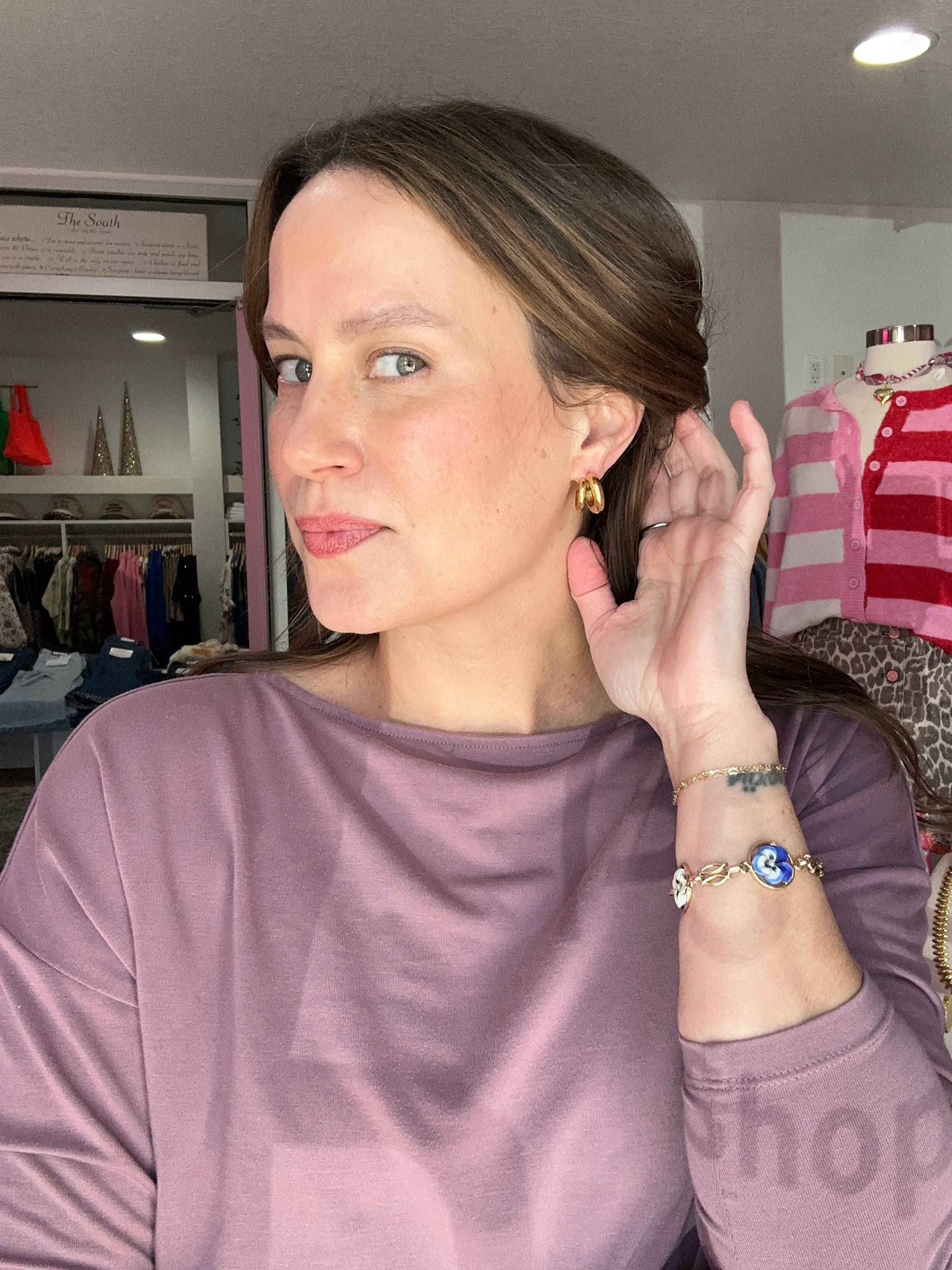 Your new everyday essential ✨ The Jordan Hoop is crafted from 18K gold plated stainless steel for lasting shine and durability. Designed to be water resistant and ultra lightweight, these hoops are comfortable enough for all-day wear while still making a timeless statement.
