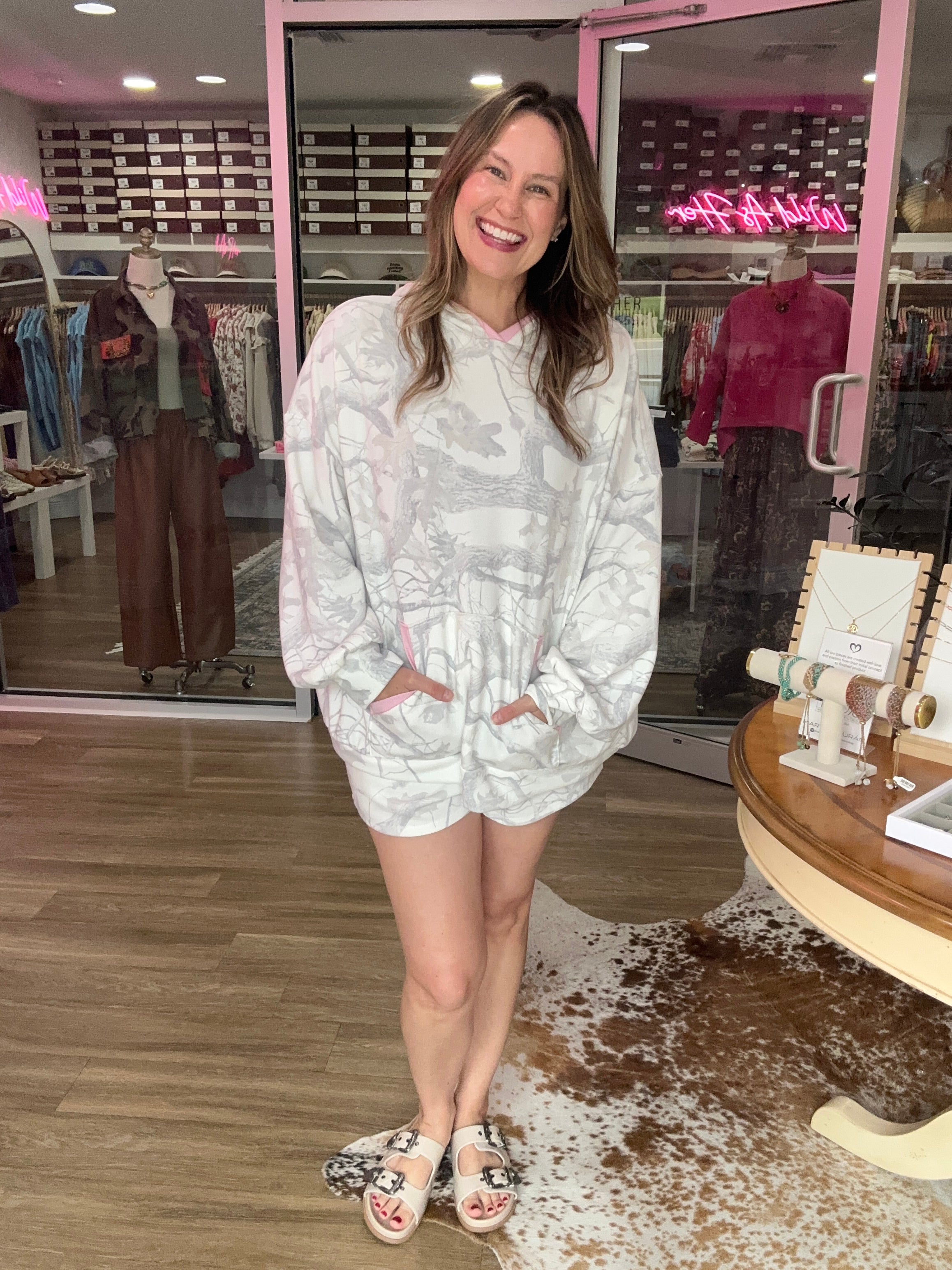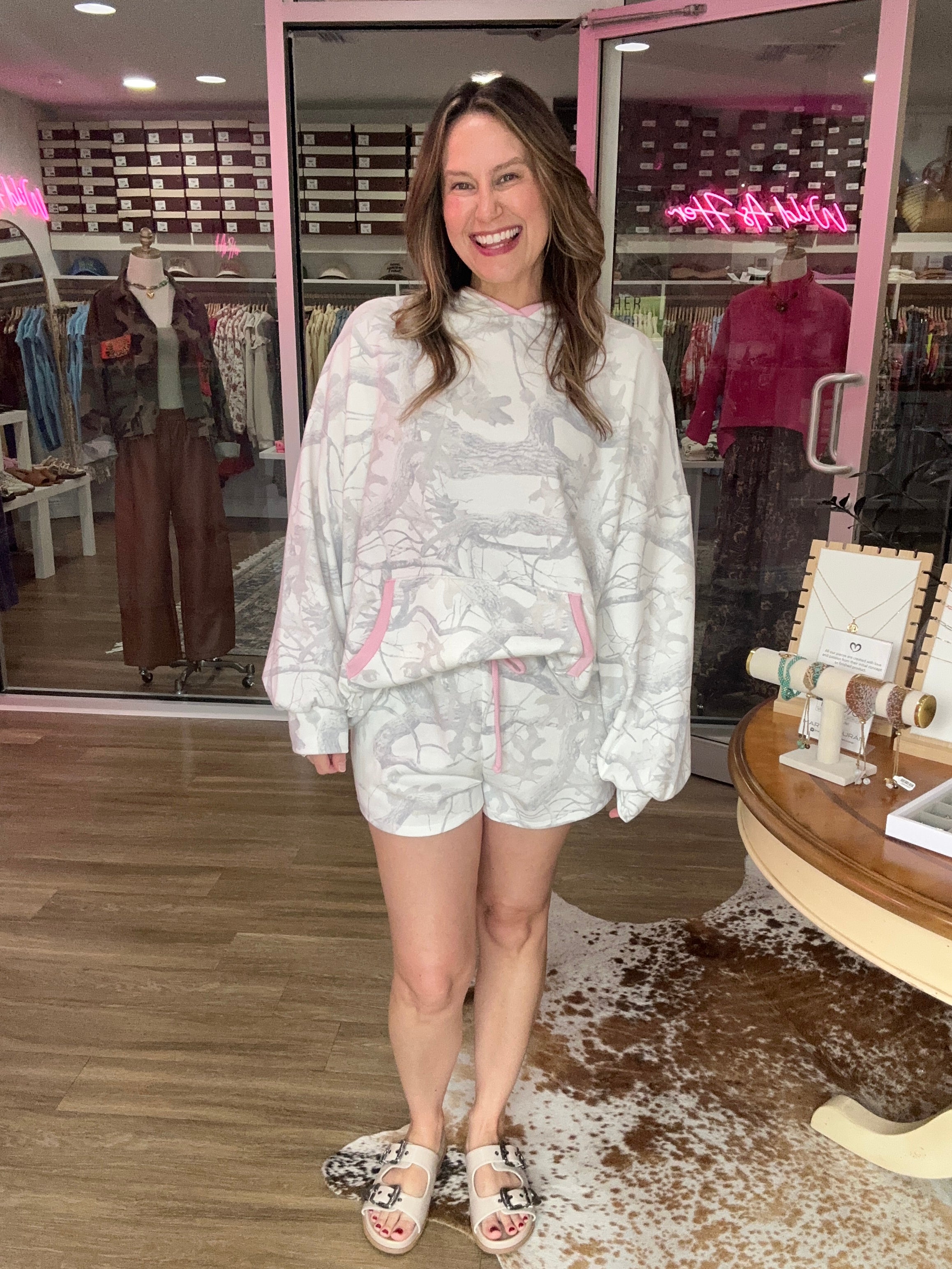 Level up your lounge look ❄️ The Frost Camo Shorts are soft, comfy, and complete with a drawstring waist for the perfect fit. Easy to wear with tees and tanks, or pair them with the matching Frost Camo Hoodie for a cute and coordinated set.