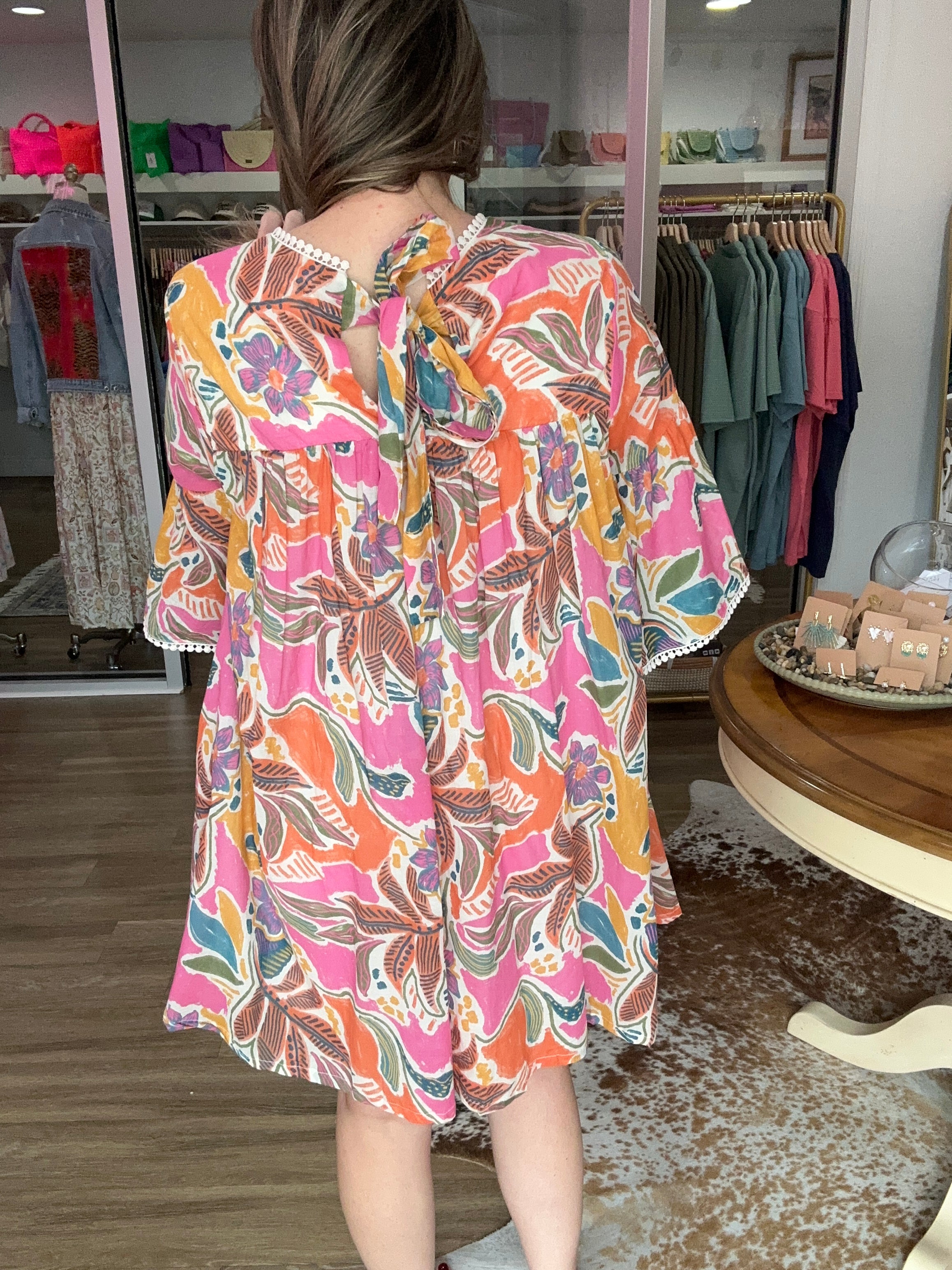 Romantic and effortlessly flirty, The Juliette Dress features a colorful floral print with delicate lace trim and a tie-back detail for the perfect feminine finish. Fully lined and flowy, it’s made for garden parties, brunch dates, and sunny days that call for something special.