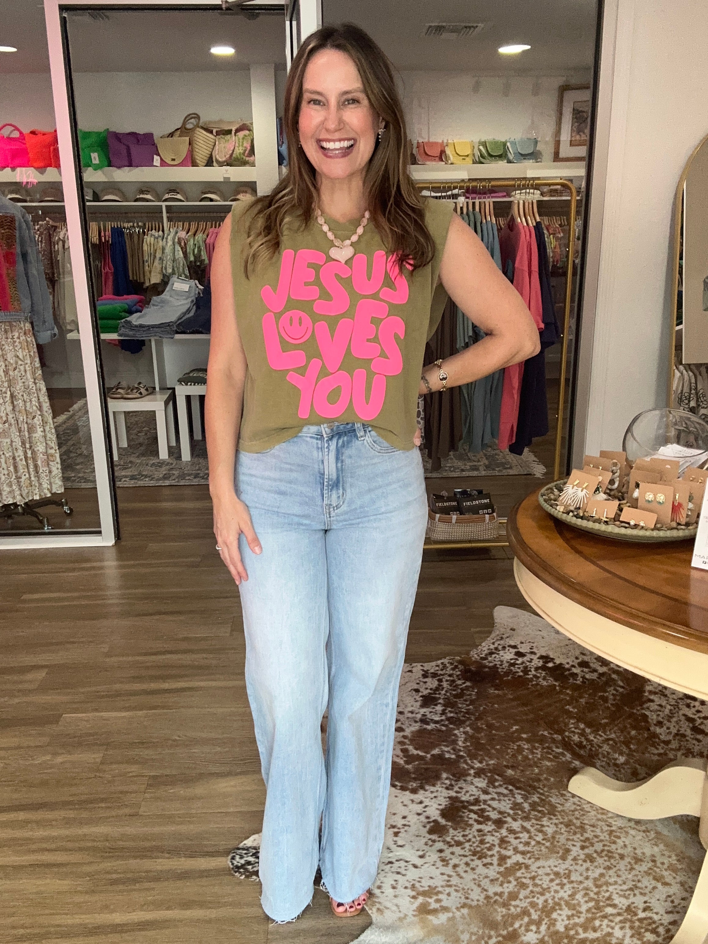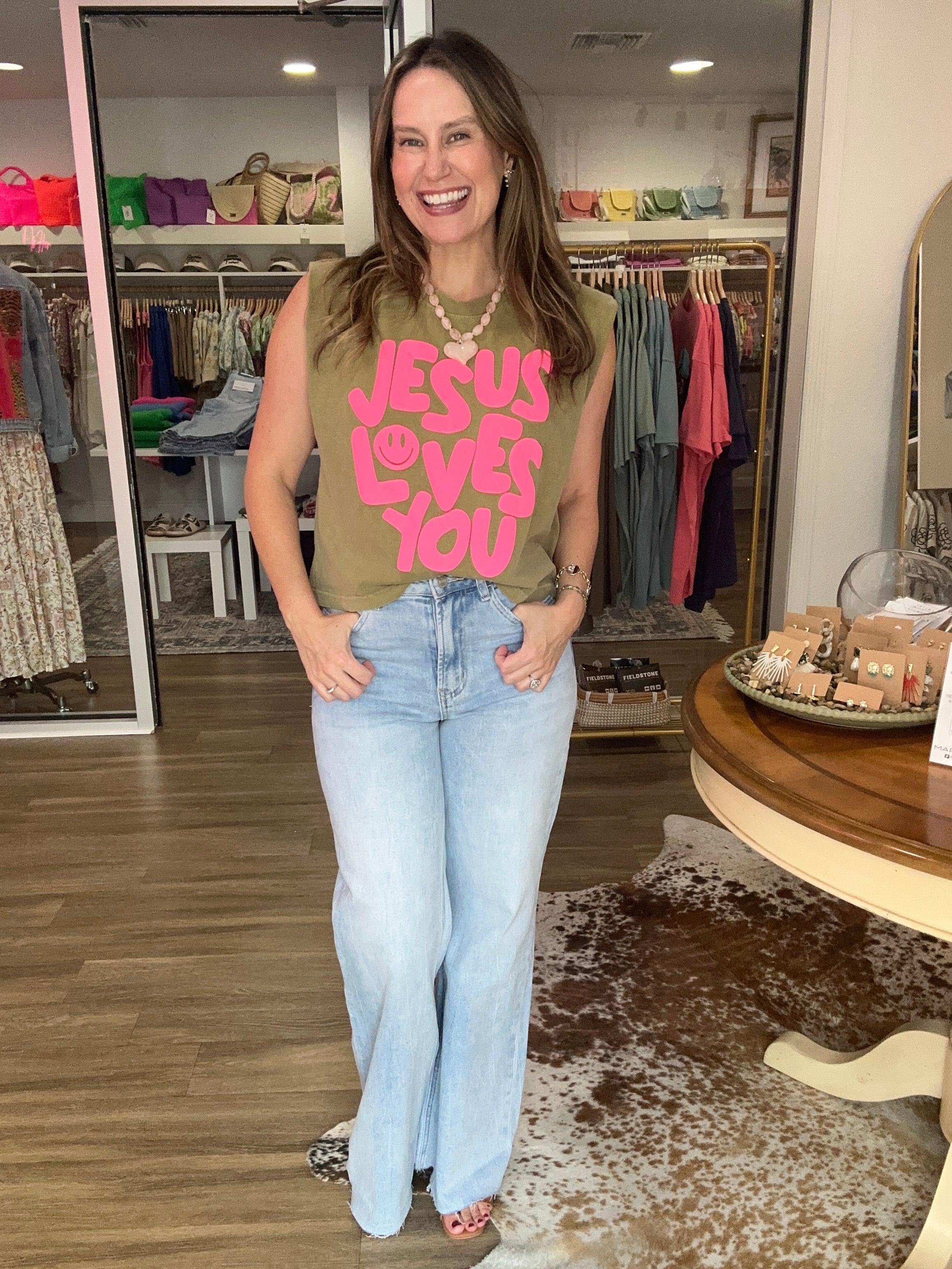Faith with a little flair 💛 The Jesus Loves You Puff Tank is soft, comfy, and full of good vibes. Featuring a happy smiley design and raised puff lettering, it’s the perfect reminder that you’re loved — and stylish while you’re at it. Pair with denim, shorts, or leggings for that effortless Wild as Her energy.