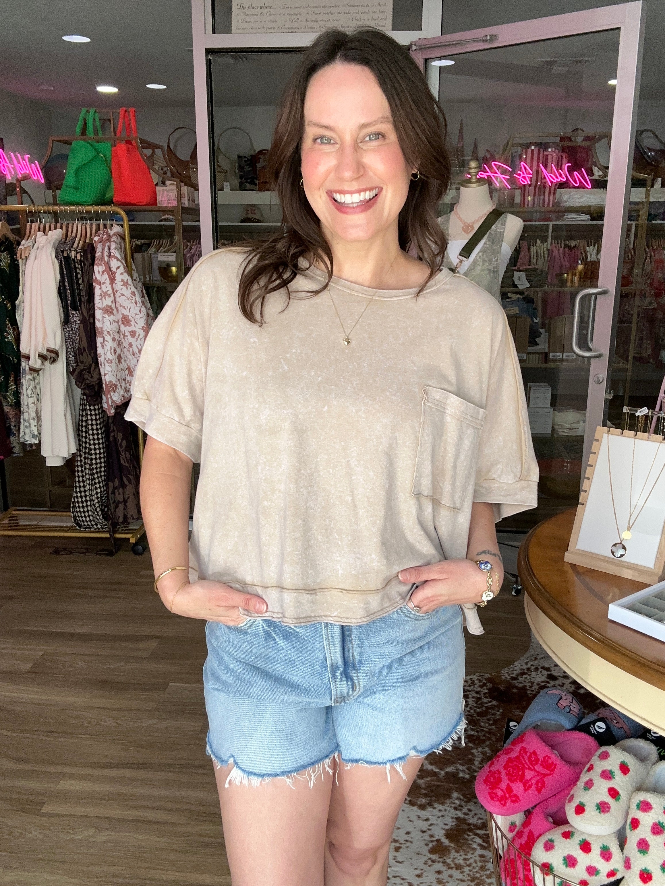 A warm-weather staple with the perfect easy fit — these high rise denim shorts are flattering, comfortable, and easy to style with everything from graphic tees to flowy tanks. The classic silhouette makes them an effortless go-to for everyday wear.